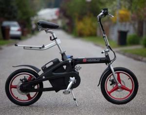 Električni malček, je kot smo že omenili, posebnež. Po velikosti brez težav spada v kategorijo zložljivih koles, zatakne se pri teži. Kljub ogrodju iz aluminijeve litine ga boste težko prenašali naokoli, razen če vsak dan ne premečete nekaj sto vreč cementa. Glavna krivca sta dva, elektromotor in akumulatorska baterija. V primerjavi s prej opisanima kolesoma ima to pregib na sredini. Za sestavljanje ni tako enostavno in porabimo okoli minuto, da ga sestavimo oziroma razstavimo. Zaradi vseh teh lastnosti ni ravno najprimernejše za dnevno vožnjo v službo, še zlasti če moramo kolo vmes razstavljati.