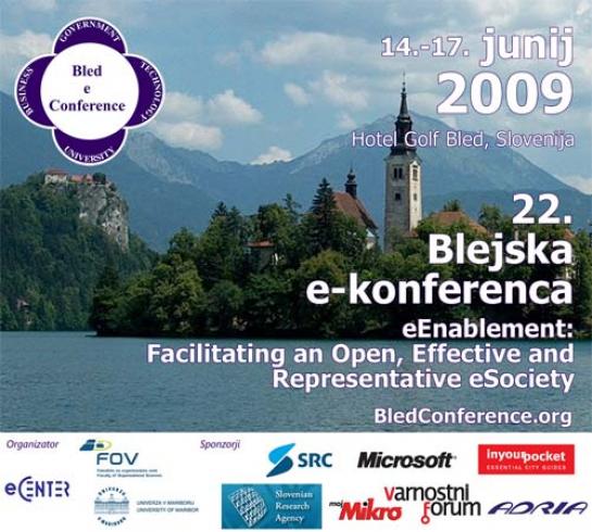 Fakulteta za organizacijske vede Univerze v Mariboru organizira tradicionalno 22. mednarodno konferenco o e-poslovanju z naslovom Bled eConference, eEnablement: Facilitating an Open, Effective and Representative eSociety (http://BledConference.org). Konferenca bo od 14. do 17. junija 2009 v Hotelu Golf na Bledu. Konference se vsako leto udeleži preko 200 udeležencev, predstavnikov univerz, organizacij, ponudnikov e-rešitev in javne uprave. Udeleženci prihajajo v večini iz tujine in sicer iz več kot 30ih držav. Bogat program letošnje konference sestoji iz treh plenarnih zasedanj, kjer so vključeni tudi predstavniki Evropske komisije. Raziskovalni del konference obsega 15 sklopov, kjer je uvrščenih 45 referatov s področja e-zdravja, e-poslovanja, mobilnega poslovanja, e-poslovnih modelov in medorganizacijskega poslovanja. Poslovni del konference obsega 10 panelov in 4 delavnice. V okviru teh bodo potekale razprave o priložnostih uporabe informacijskih tehnologij za povečanje konkurenčnosti vseh vrst organizacij v mednarodnem okolju. Glavna sponzorja konference sta tudi letos SRC in Microsoft Slovenije.