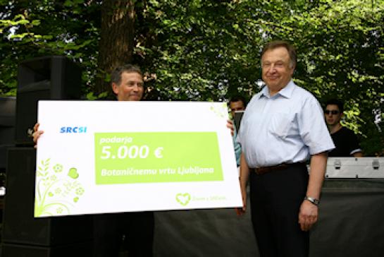 Simbolični ček je dr. Jožetu Bavconu, vodji Botaničnega vrta, izročil Ivan Žerko, predsednik uprave podjetja SRC.SI.