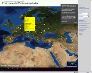 Katera država je bila lansko leto najbolj ohranjena? Univerzi Yale in Columbia sta izračunali indeks okoljske učinkovitosti EPI (Environmental Performance Index), rezultate pa zelo nazorno in grafično način prikazali na spletni strani (http://epi.yale.edu/Home). Boljši je rezultat, višje na lestvici je država, Slovenija je 15., med prvih 20 pa je štirinajst evropskih držav. Indeks je rezultat zelo kompleksne formule, ki vključuje različne vidike okolja in njegovega varstva. Sestavlja ga 25 kazalcev, razvrščenih v šest kategorij: stanje okolja, onesnaževanje zraka, viri pitne vode, biološka pestrost in naravni habitati, uporaba naravnih virov in podnebne spremembe. V raziskavi je zajetih 149 držav, krovni rezultati so prikazani za zemljevidu, možen pa je tudi podroben pogled izračuna vseh 25 kazalcev za vsako državo.