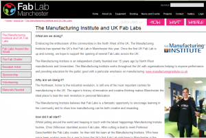 Ideja Fab Labov ni nova. Gre za nekaj, kar je nastalo na ameriškem MIT-ju, se razširilo po celotni Ameriki, nato pa tudi v Afriko. Nastalo je omrežje, preko katerega si uporabniki lahko izmenjujejo ideje, načrte in znanje ne glede na to, kje se nahajajo. Manchesterski Fab Lab je prvi tak v Veliki Britaniji, Manufacturing Institute, dobrodelna ustanova, ki je nastala pred petnajstimi leti in je nosilec ideje v VB pa napoveduje, da bo takšnih laboratorijev še več.