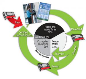 - vrnitev izrabljenih Lexmarkovih kartuš in tonerjev v reciklažo (Lexmark v okviru svojega programa Lexmark Cartridge Collection vsako leto reciklira na milijone kartuš in tonerjev; predaja potrošnega materiala je za uporabnika brezplačna in je na voljo v več kot 50 državah)