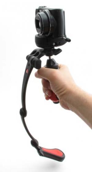 Ste se kdaj vprašali, kako naredijo dolge posnetke, ko je kamera tik pred igralcem in se pomika nazaj, pri tem pa je gibanje tekoče, kot bi bilo posneto na tračnicah, a teh ni nikjer? Za tem stoji prav posebna naprava, imenovana Steady Cam, ki jo ima na sebi pritrjeno snemalec. Poleg njega je praviloma še pomočnik, ki ga pomaga usmerjati, saj je snemalec zaposlen z lovljenjem kadra in hojo – da bi še gledal nazaj, je že krepko preveč. Za gladko gibanje kamere poskrbi posebno vzmetenje in uteži, ki umirijo gibanje in iz snemalca naredijo čisto spodobnega dvigovalca uteži. Dolg uvod za v osnovi podobno, a bistveno cenejšo Manfrottojevo napravico ModoSteady, ki med drugim počne tudi to. Uporabimo jo lahko tudi kot mini stativ ali oporo za kamero, tako da nam ponuja tri možnosti za uporabo. Seveda je uporaba umirjevalnika za kamero daleč najzanimivejša in smo jo tudi temeljito preizkusili. Brez težav lahko zapišemo: kolikor denarja, toliko glasbe. ModoSteady je namreč dokaj lahek, držalo ima zelo preprost zglob, tudi teža je dokaj majhna. Temu primeren je tudi rezultat, ki seveda zaostaja za pravim »steady camom«. A med njima je kar nekaj evrov razlike, za amaterskega snemalca praktično nedosegljive. Kljub težavam s tresenjem boste z ModoSteadyjem lahko naredili zanimive posnetke, ki ste jih prej veliko težje. Pri hoji je tresenje vidno, a ga je veliko manj, kot če bi snemali le iz roke. In če upoštevamo še dodatni možnosti, oporo pri snemanju in stativ, postane napravica zelo uporabna. Lebdeča kamera lahko tako postane vaš naslednji izziv za snemanje. Še to, Canon 5D mark II je absolutno pretežak, so pa zato manjši kompaktneži, ki prav tako zmorejo HD-snemanje, toliko zanimivejši za uporabo z ModoSteadyem.