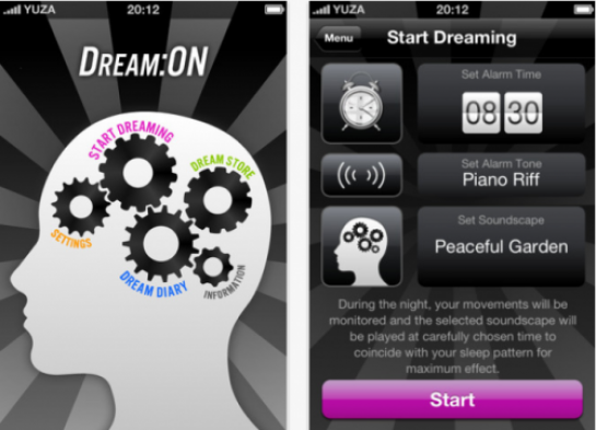 Program deluje tako, da uporabnik svoj iPhone položi poleg sebe na posteljo, zažene program in v njem nastavi, kdaj bi rad zjutraj vstal. iPhone s svojimi senzorji ugotavlja, kdaj in kako se uporabnik premika oziroma premetava v postelji in glede na to nato predvaja različne zvočne sheme, ki naj bi znale spremeniti uporabnikove sanje. Obstaja nekaj teh shem oziroma tem, ki naj bi povzročile, da uporabnik sanja, da hodi po gozdu, leži na plaži ali se sprehaja po mirnem vrtu. Program je Dream:ON je sicer brezplačen, vendar je potrebno opozoriti, da vsi uporabniki z njim nimajo dobrih izkušenj, Dosedanje raziskave so pokazale, da 21% ljudi, ki so (avtorju poslali odgovore), zaradiprograma ni moglo spati, 15% pa jih je javilo, da so imeli neprijetne sanje.