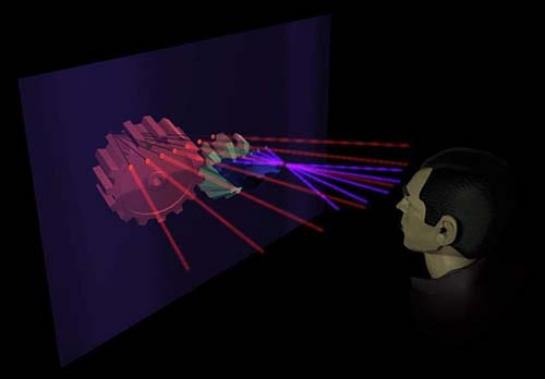 Točke, oziroma kot jih tudi imenujejo »prostorske točke« (angl. voxel – iz volumetric pixel, volumetrična točka), hologramskega zaslona oddajajo svetlobne žarke različne intenzitete in barve v različne smeri. Površina, ki lahko oddaja svetlobo, na kateri so te prostorske točke, deluje kot digitalno okno in lahko prikaže pravo 3D-sliko, ne zgolj bolj ali manj dovršen približek. Opazovalec ne potrebuje polarizacijskih očal.