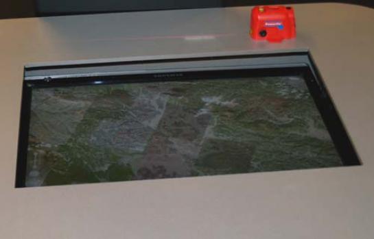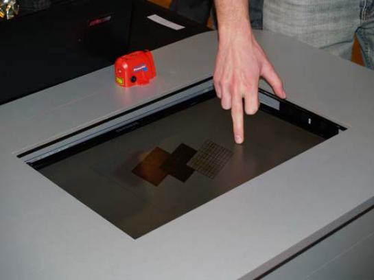 Pohvalno je, da svetovni trendi pridejo tudi k nam. Ker gre za »študentsko« inovacijo, je bila zelo poudarjena nizka cena sestavnih delov. Zato na več dotikov občutljiva naprava – zaslon deluje nekoliko drugače od že znane Microsoftove pogruntavščine Surface. Za obe lahko rečemo, da delujeta na optičnem načelu, le da MtOuch namesto infrardeče kamere uporablja cenejše laserje. Zelo preprosto povedano, napravo sestavljata dva izvora laserske svetlobe, po eden za vsako od koordinatnega sistema (osi x in y), in sistem zrcal. Zrcala postopoma odbijajo žarka proti površini in nato nazaj do tipal. Oboje je na dnu naprave, omarice ali klubske mizice. Žarka se dejansko premikata po površini, eden od zgoraj navzdol, drugi z leve v desno (s hitrostjo 30 sličic na sekundo). S prstom prekinemo žarka in tako programska oprema zazna koordinate dotika. Ker smo lahko v živo pred časom preizkusili tudi prototip Surface, smo ugotovili, da je ta odzivnejši od MtOucha. Dejansko smo imeli kar nekaj težav pri upravljanju Google Eartha, potem pa, ko smo kretnje delali občutno počasneje, je bil občutek podoben. Ne pa čisto enak, toda MtOuch je prototip, ki ga je moč še izboljšati (tako strojno kot tudi njegovo programsko opremo).