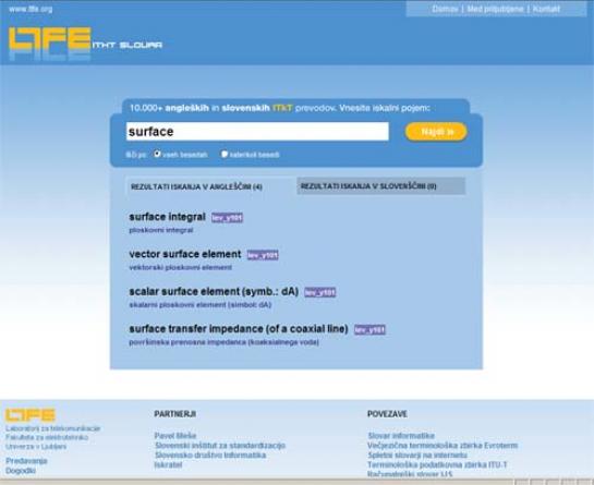 Prav zato v sodelovanju z zunanjimi sodelavci, med katerimi velja posebej izpostaviti g. Pavla Mešeta ter Elektrotehniško zvezo Slovenije, že 10 let gradimo Slovar telekomunikacij in informacijskih tehnologij, s katerim želimo tako splošni kot strokovni javnosti omogočiti dostop do najaktualnejših pojmov iz sveta IKT. Gre za največjo slovensko zbirko, ki vsebuje poleg več kot 10.000 prevodov strokovnih pojmov s pripadajočimi kraticami tudi njihovo razlago. Pomembna novost prenovljenega slovarja, ki je na voljo na spletnem naslovu slovar.ltfe.org, so pojmi, ki se pojavljajo v okviru diplomskih, magistrskih ter doktorskih nalog na Fakulteti za elektrotehniko Univerze v Ljubljani.