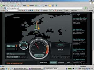 www.speedtest.net: Ne samo, da je ta stran oblikovna zelo všečno, zmogljivost prikaže na »avtomobilskem« števcu, po svetu ima razporejenih več strežnikov. Bližje kot je strežnik, zanesljivejši so podatki. Glede na uporabnikov IP-naslov sistem sam določi (rumena piramida), kateri strežnik mu je najbližji.
