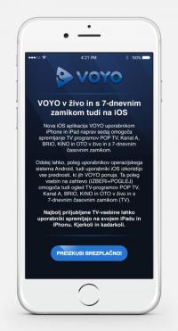 Odslej lahko, poleg uporabnikov operacijskega sistema Android, tudi uporabniki iOS izkoristijo vse prednosti, ki jih VOYO ponuja. Ta poleg vsebin na zahtevo (IZBERI+POGLEJ) omogoča tudi ogled TV-programov POP TV, Kanal A, BRIO, KINO in OTO v živo in s 7-dnevnim časovnim zamikom (TV).
