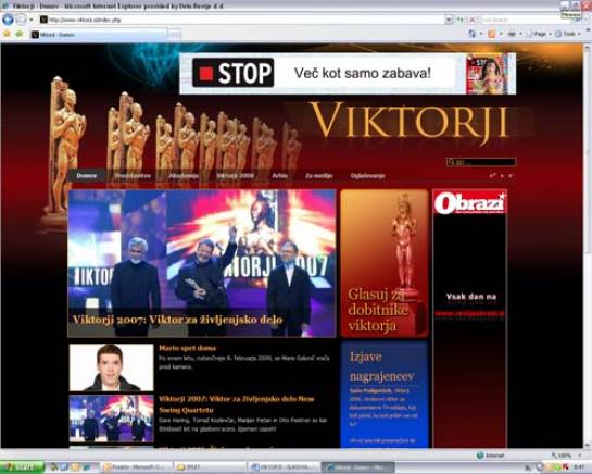 Na spletni strani pa lahko preberete vse o zgodovini Viktorjev, poslanstvu, popularnih in strokovnih viktorjih in o tem, kdo so člani Akademije Viktor. Pobrskate lahko po arhivu prireditev vse od leta 1992, si ogledate galerije slik in preberete utemeljitve, zakaj si je kdo prislužil in domov odnesel ta dragoceni kipec. Pridružite se nam na ta hip najbolj glamurozni spletni strani, kjer se družimo v pričakovanju najbolj priljubljenih popularnih osebnosti.