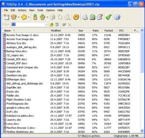 No, žal pa zna le manjše število teh formatov tudi dejansko zapakirati nazaj v prvotno obliko. V tej smeri so fantje omogočili tudi vstavljanje dodatkov, ki jih snemate s spletne strani, pa si lahko prenesete tudi možnost stiskanja v format RAR in ACE, če vam ZIP ni dovolj. Zato pa podpira algoritem Deflate64, ki vam bo omogočil da se kosate tudi z datotekami, večjimi od 4 GB. Prav tako pozna večino poglavitnih kodirnih algoritmov (DES, 3DES, Rijndael, Blowfish ...), tako da lahko seveda kodirate tudi svoje podatke.