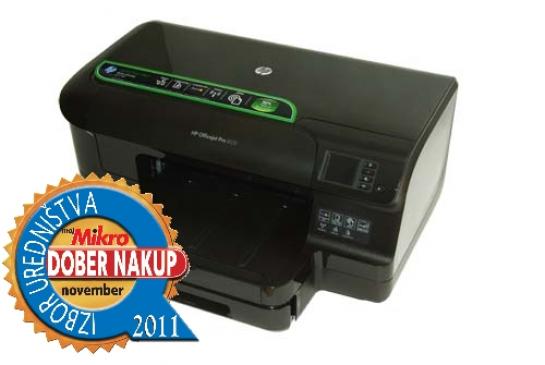 HP je revolucijo v svetu tiskalnikov − pošiljanje dokumentov v tiskalnik kar prek e-pošte − predstavil že pred dvema letoma, a zdaj funkcija iz domačega okolja prav zares prihaja tudi v poslovne modele. HP precej propagira svoje poslovne brizgalne tiskalnike, predvsem pa trdi, da z njimi dosegamo do pol nižjo ceno glede na laserski tisk (sploh pri barvnem tisku). Tiskalnik 8100 je narejen izredno kakovostno, kar je jasno že po prvem odpiranju in premikanju plastik, povsem pa se o tem prepričamo, ko začnemo tiskalnik upravljati prek barvnega LCD-zaslona (privzeto lahko na njem spremljamo trenuten nivo kartuš). Tiskalnik zna slovensko, upravljanje pa je na moč preprosto (poleg zaslona so le štirje menijski gumbi), za zaslonom pa se najverjetneje skriva derivat sistema WebOS ... Na zadnji strani tiskalnika najdemo ethernet in USB-priključka, ob namestitvi tiskalnika pa tja priključimo tudi priloženo enoto za obojestranski tisk. HP je z modelom OfficeJet Pro 8100 popolnoma prenovil svoje kartuše kakor tudi sistem menjave. Kartuše so popolnoma spremenile obliko, in način vstavljanja. Še vedno je za dostop treba odpreti zgornji pokrov vklopljenega tiskalnika, in ko se glava parkira na sredino, odpremo varovalko, nato pa le pritisnemo kartušo in ta skoči ven. Novo kartušo preprosto potisnemo v režo, kjer se zaskoči. Preprosto, natančno in zelo čisto! Kartuše so videti večje kot pri modelu Officejet Pro 8000, cenovno pa smo celo zaznali rahlo pocenitev na izpisano stran. Tiskalnik je namenjen tiskanju do 15.000 izpisov mesečno. Je precej večji od običajnih poceni brizgalnikov, a hkrati manjši od predhodnika. Oblikovno je veliko manj štrleč, saj je kaseta skrita v dnu tiskalnika in ne štrli ven. Kakovost tiska je glede na Officejet Pro 8000 precej izboljšana, saj privzeto tisk poteka pri nominalni ločljivosti 1200 x 600, kar je bistvena izboljšava glede na 600 x 600 pri predhodniku. Tiskalnik je odlična izbira za tisk različnih dokumentov v barvi, saj ima nežne prehode tone in barv (ki jih laserji ne ponujajo niti v petkrat dražjih modelih), hkrati pa je ta tisk res poceni (čeprav je to odvisno od zasedenosti strani). Največja prednost pa je resnična univerzalnost tiskalnika, saj zdaj podpira tudi wi-fi, prek storitve ePrint pa lahko nanj tiskamo tudi iz mobilnih telefonov, tablic ... Popoln pisarniški spremljevalec.