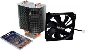 OCZ je predstavil naslednika izredno priljubljenega hladilnika procesorjev Vendetta. Novinec gradi na še večji strukturi, kjer se prepletata baker in aluminij. S posebno tehnologijo, imenovano HDT (Heatpipe Direct Touch) učinkovito prenaša toploto neposredno s procesorja na toplotne cevi, s ohlajanje pa poteka prek mnogoterih aluminijastih reber. Ločitev hladilnega elementa in ventilatorja omogoča pasivno hlajenje nizkoenergijskih procesorjev (recimo tistih pod 45 W) ter menjavo ventilatorja, če to želimo. V škatli dobimo še pritrjevalne mehanizme za kup različnih platform, kar pomeni. da je hladilnik zelo vsestranski. Pohvaliti velja pametne mehanizme. saj je montaža izredno enostavna in ni treba razstaviti celotnega računalnika! Priložen ventilator je zelo tih in ni oddajal nikakršnega šuma vibracij. Priključek za napajanje je 4-žilni kar omogoča, da na novejših platformah hitrost ventilatorja krmili sam BIOS in se tako prilagaja dejanski potrebi oz. segrevanju. Čeprav je priložena tudi termalna pasta, pa za najboljši učinek uporabimo pasto OCZ Freeze, ki ima še posebej dobre termalne specifikacije nizke termalne upornosti in visoke termalne prevodnosti, prav tako pa temelji na netoksični formuli. Tako dosega tudi 10 % boljše rezultate kot običajne, na srebru temelječe paste (in verjemite, pri navijanju in 60 C se 10 % zelo pozna pri stabilnosti sistema). Skratka, odlična kombinacija hladilnika, ki je ob normalnem delu neslišen, pri navijanju pa še vedno tih, a ponuja le kanček slabše hlajenje od vodnega hlajenja!